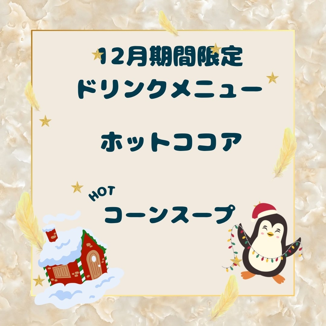 12月期間限定ドリンクメニューのご案内|伊勢小俣店|伊勢小俣店 2025.12.01 12月期間限定ドリンクのご案内.伊勢小俣店.三重トヨペット こんにちは、伊勢小俣店です😀 本日は、12月期間限定ドリンクのご案内です!!! ホットココア HOT コーンスープ 上記の2種類を期間限定にてご用意しております💓 ご来店の際は是非ともご賞味ください💞 皆様のご来店を心よりお待ちしております!!! 🐧 伊勢小俣店 一同 🐧 前の記事へ 店舗ブログ一覧に戻る 次の記事へ
