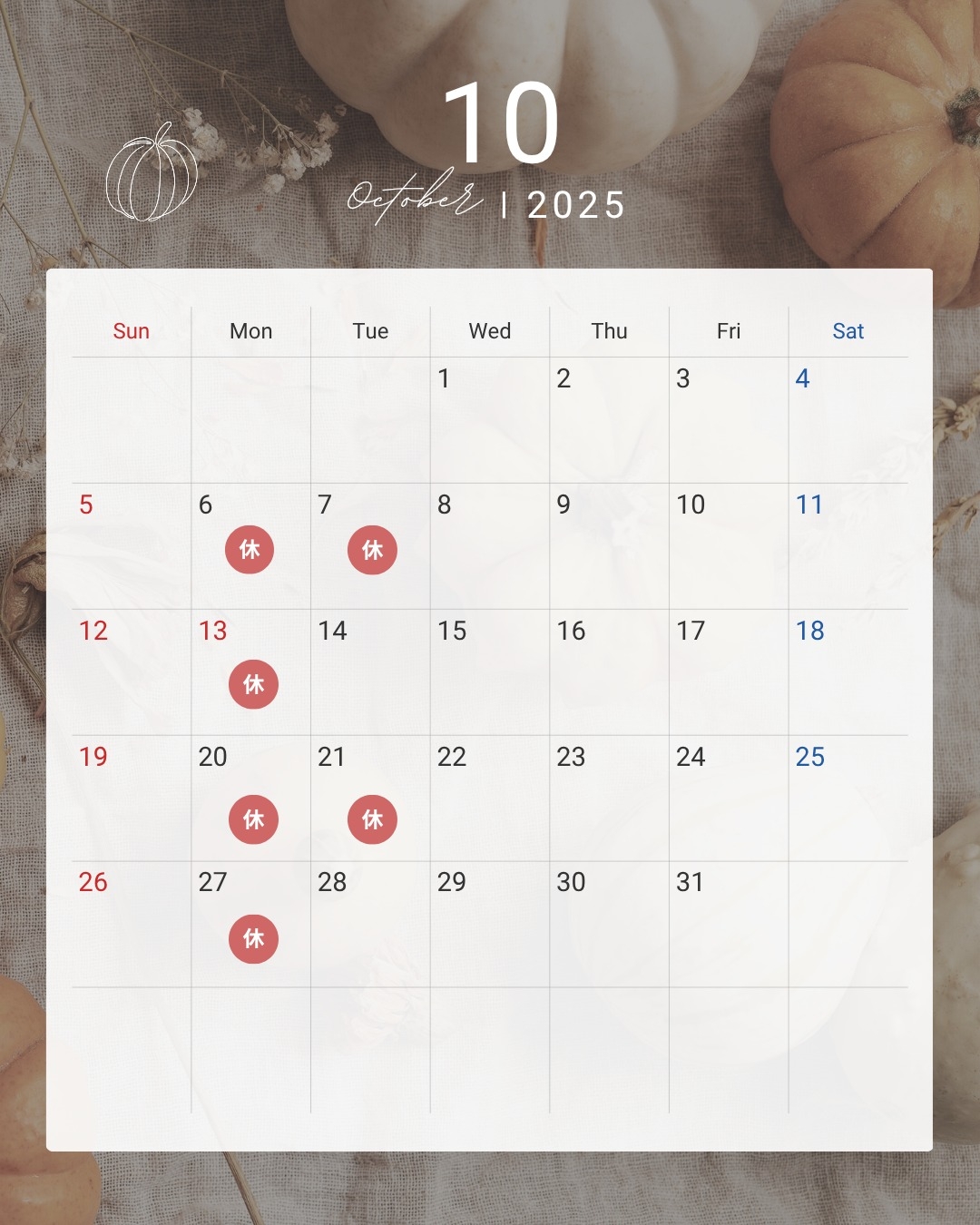 10月休業日のご案内|名張黒田店|三重トヨペット