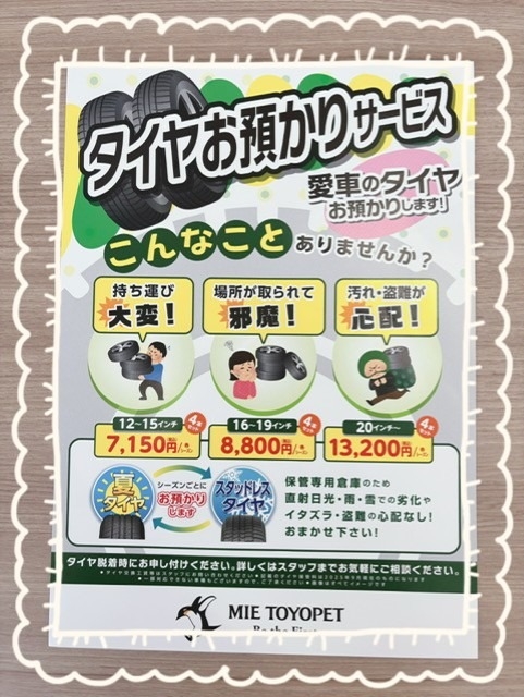 タイヤ預かりサービスのご案内です!|四日市生桑店|三重トヨペット