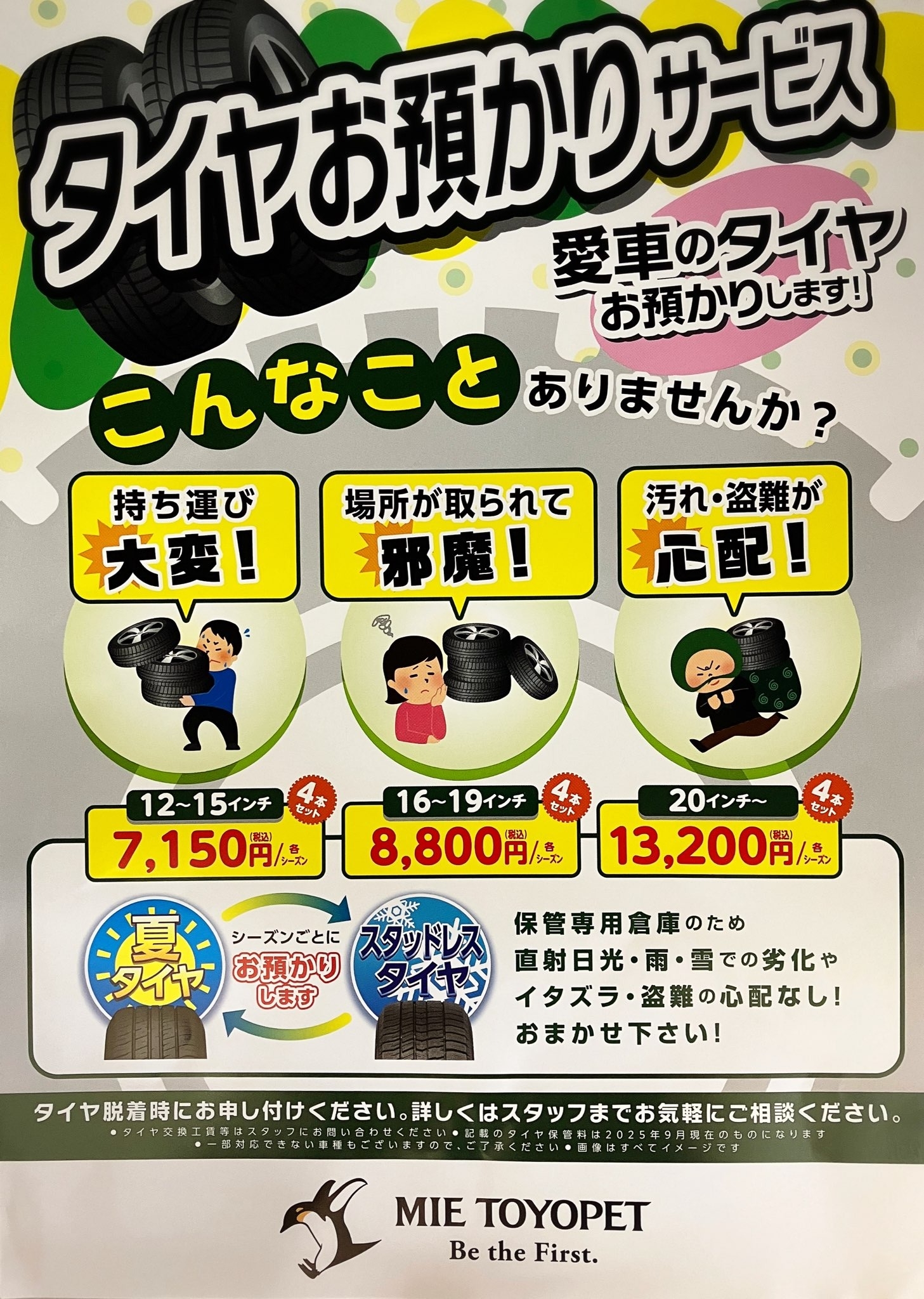 タイヤお預かりサービス🚗|尾鷲店|三重トヨペット