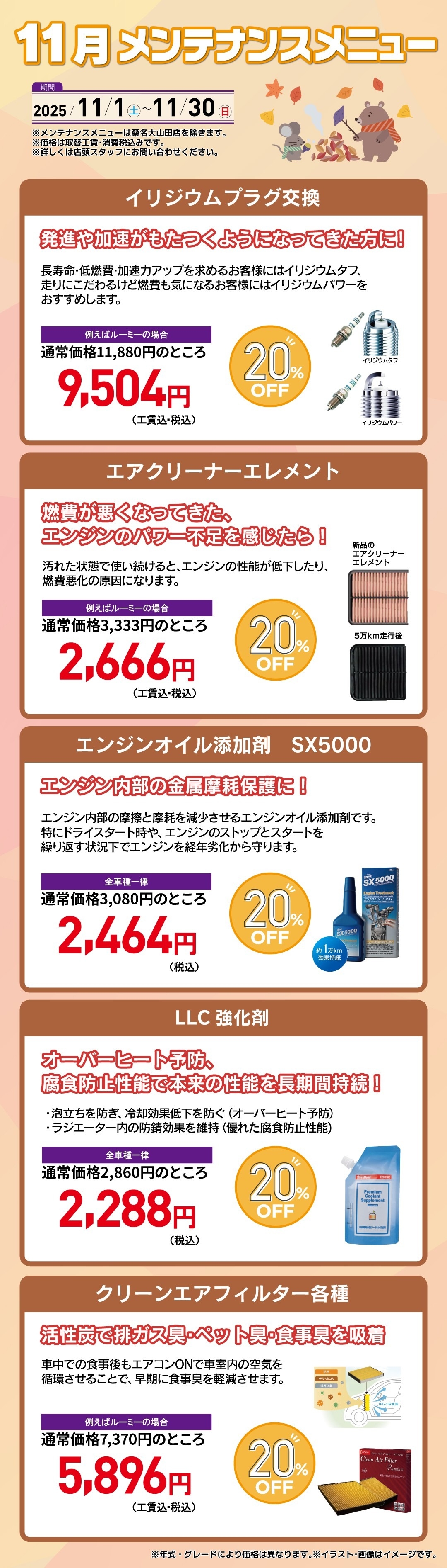 11月メンテナンスメニューのご案内|四日市生桑店|三重トヨペット