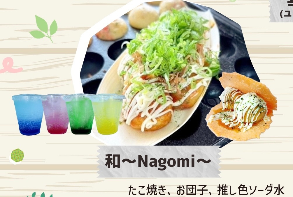 たこ焼き、お団子、推し色ソーダ水
