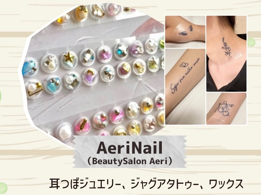 (耳つぼジュエリー、ジャグアタトゥー、ワックス)