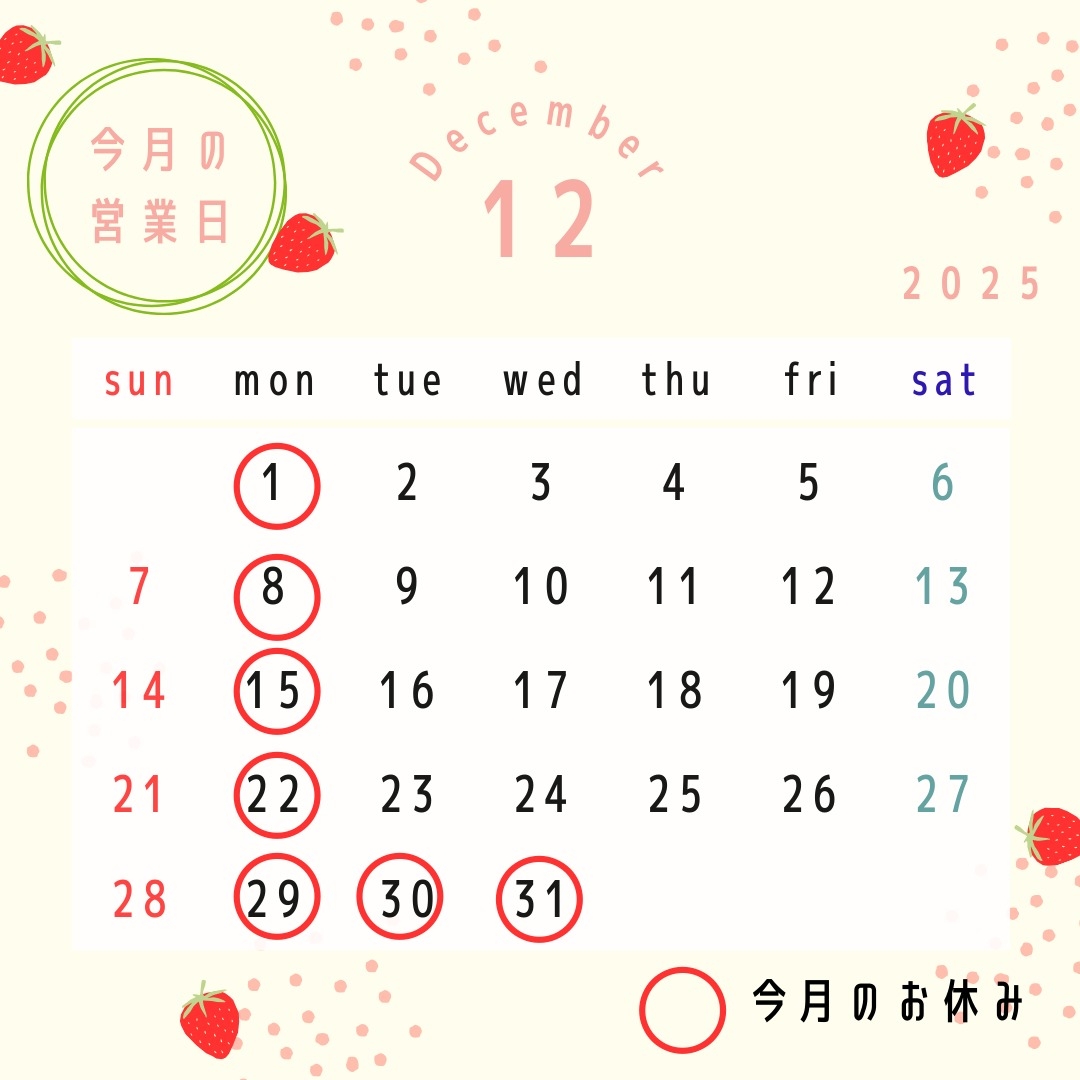 12/30(火)・12/31(水)は休業日とさせていただきます。