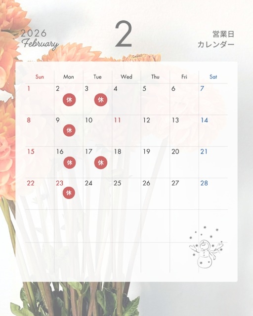 2月の休業日のご案内です