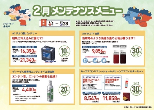 2月🚗メンテナンスメニュー🔧|尾鷲店|三重トヨペット