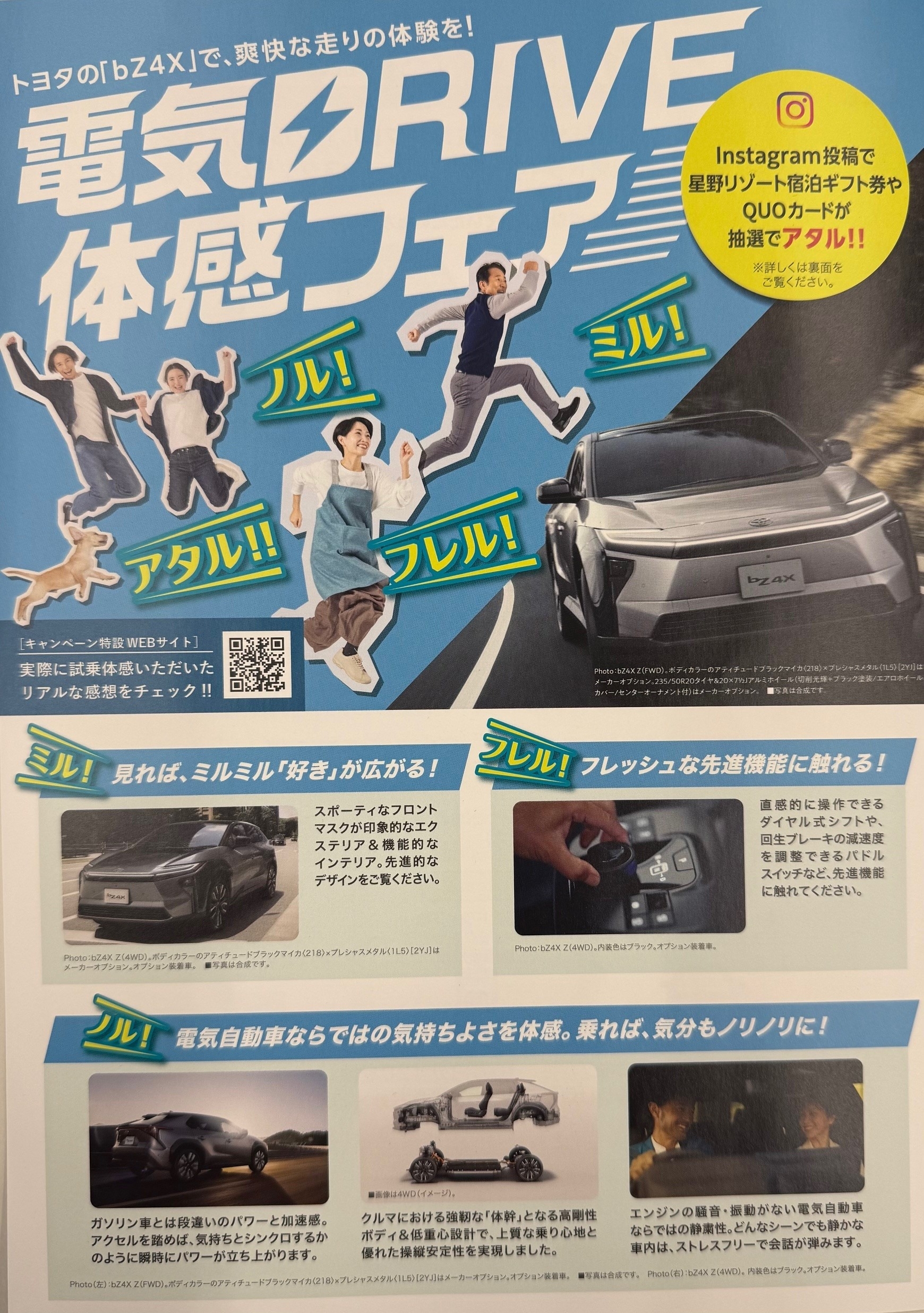 電気DRIVE体感フェア開催中にbZ4Xにご試乗いただき、