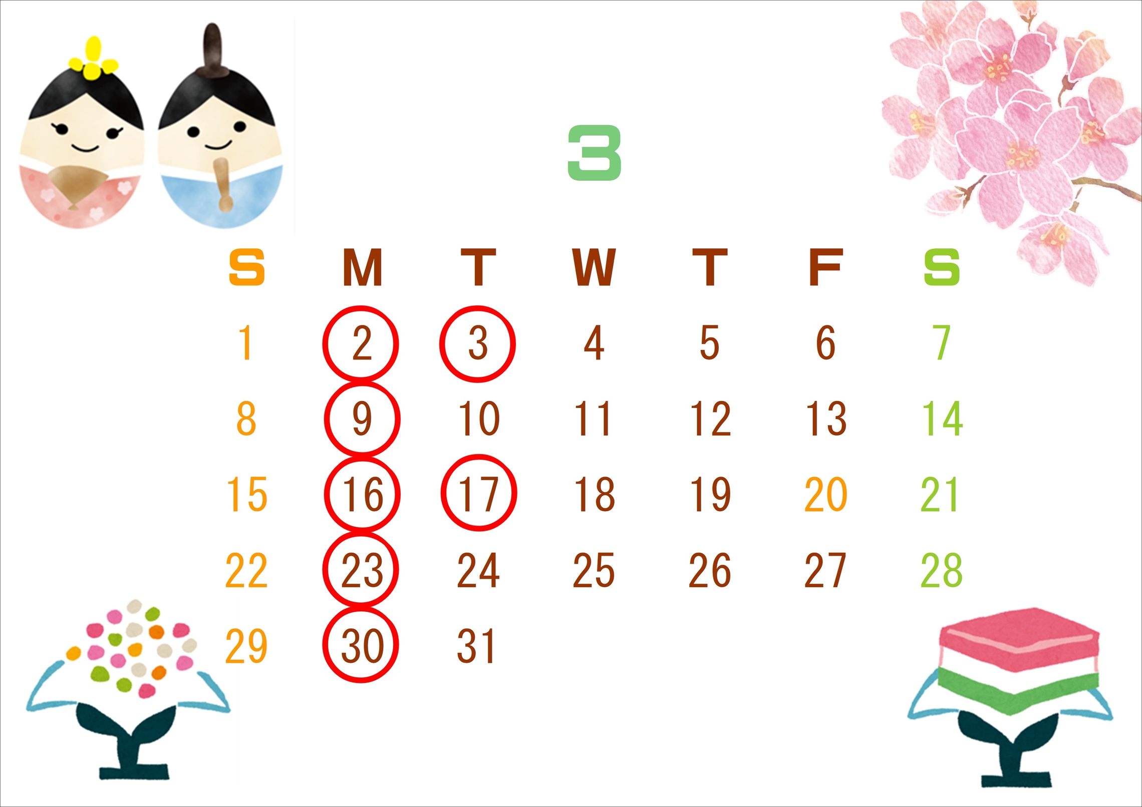 3月の定休日のお知らせです!