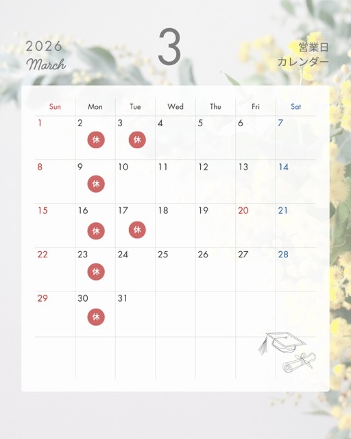 3月の休業日のご案内です