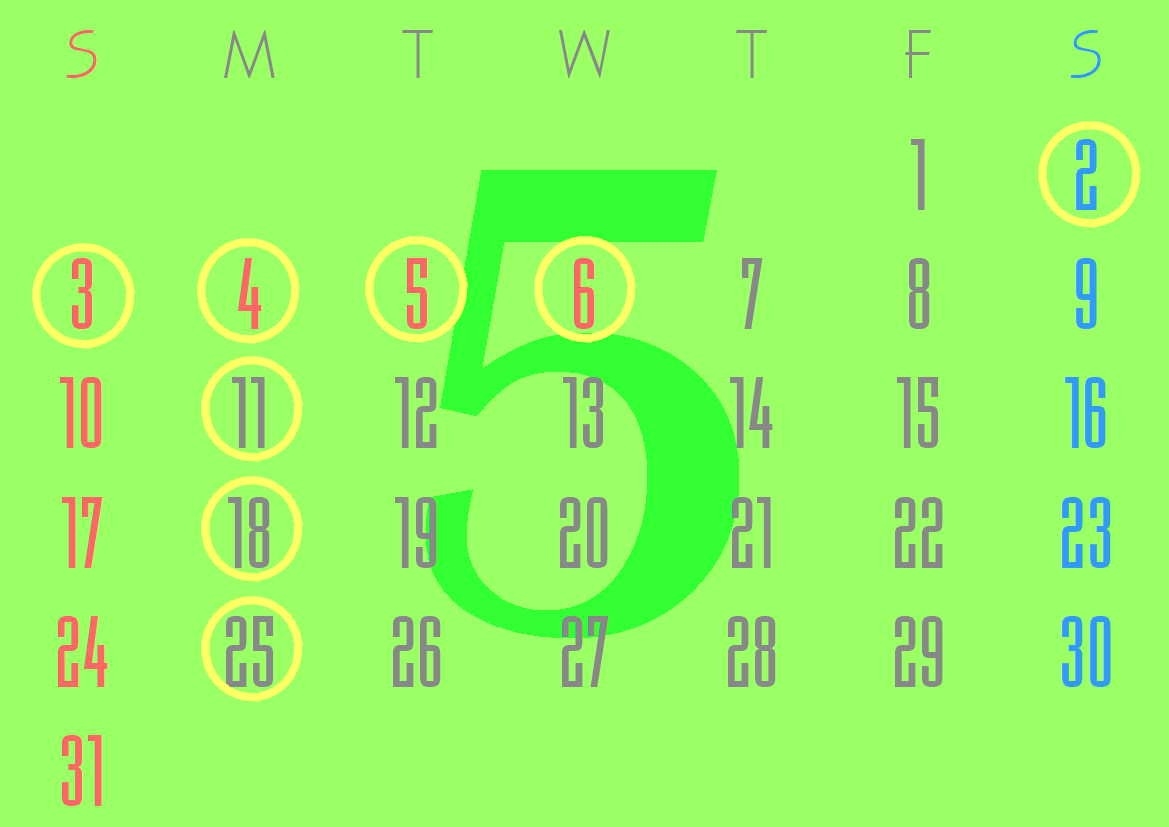 5月休業日のお知らせをさせていただきます。